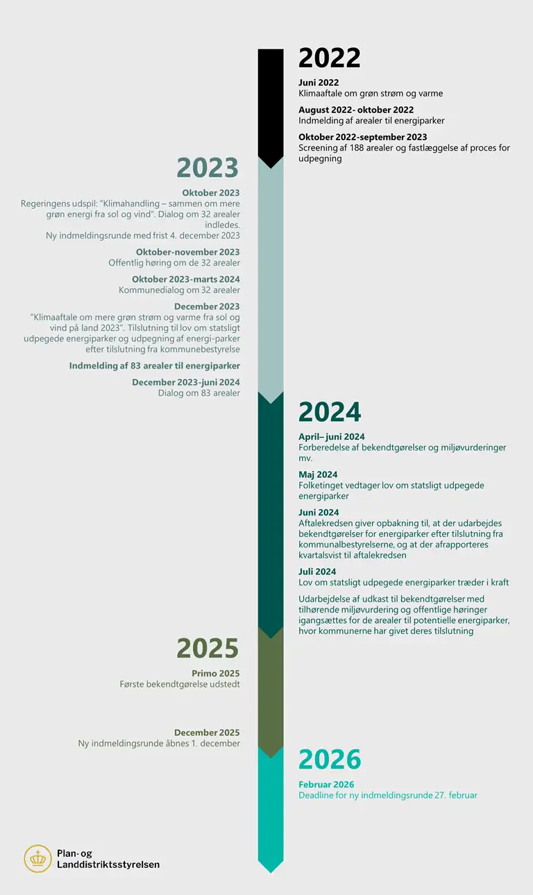 Der har ind til nu været tre indmeldingsrunder, hvor kommuner og VE-opstillere har haft mulighed for at indmelde arealer til potentielle energiparker.