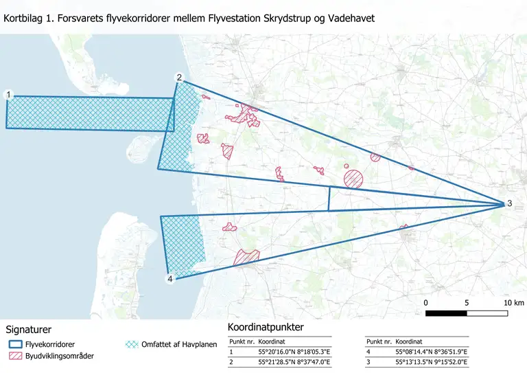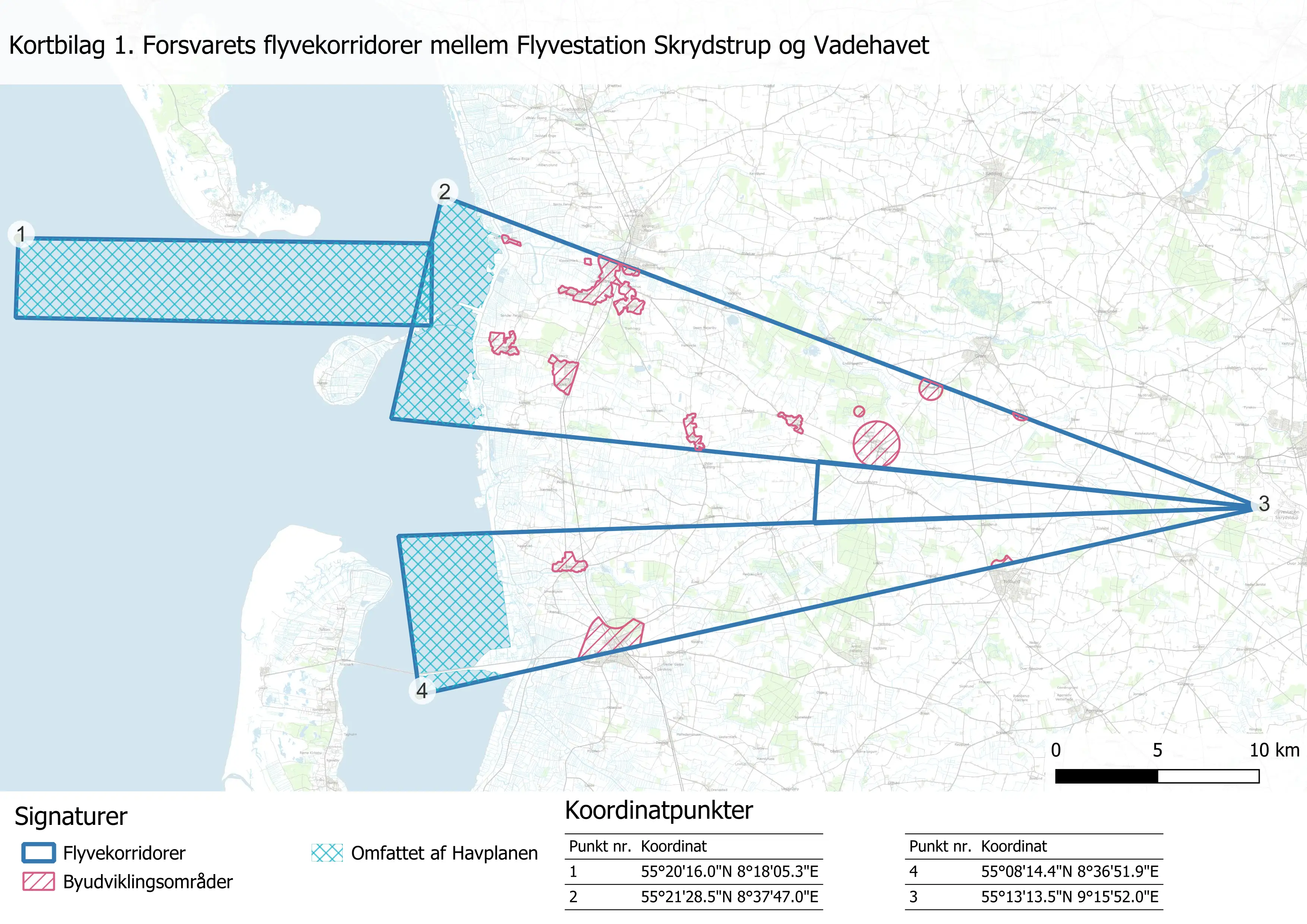 Mellem Flyvestation Skrydstrup og Vadehavet ligger Forsvarsministeriets flyvekorridorer, som benyttes, når piloterne skal gennemføre den nødvendige uddannelse i brug af kampflyenes våbensystemer.